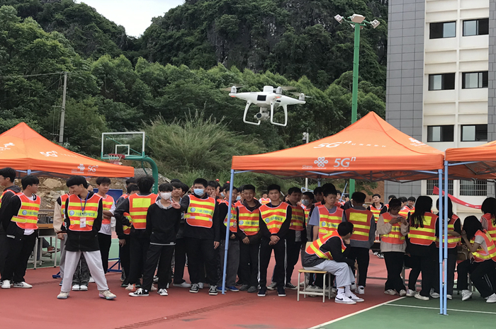 學生在展示使用無人機測地形圖